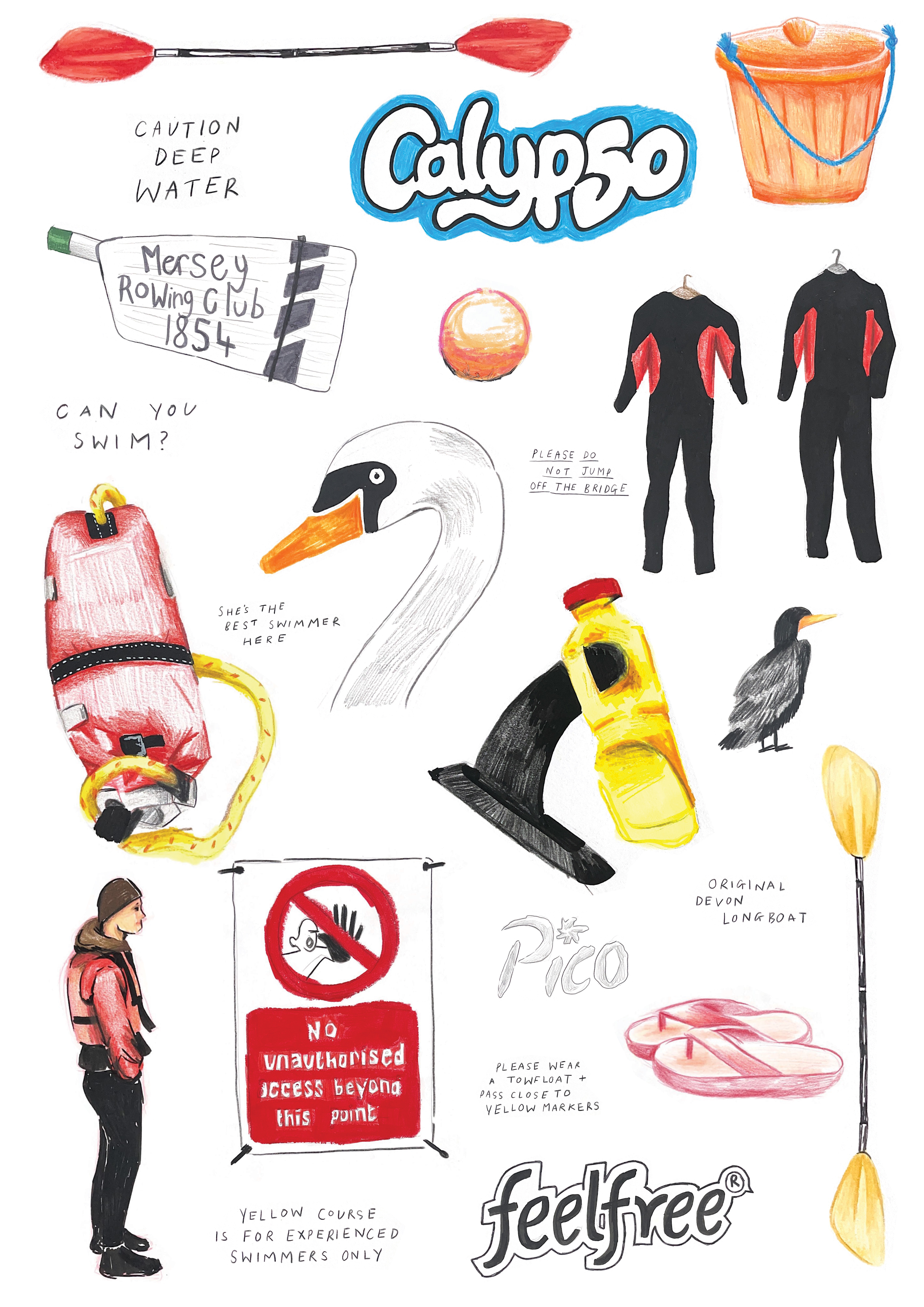Illustrations from the Liverpool Watersports Centre. Made with gouache and ink.